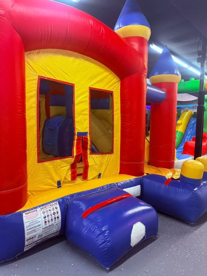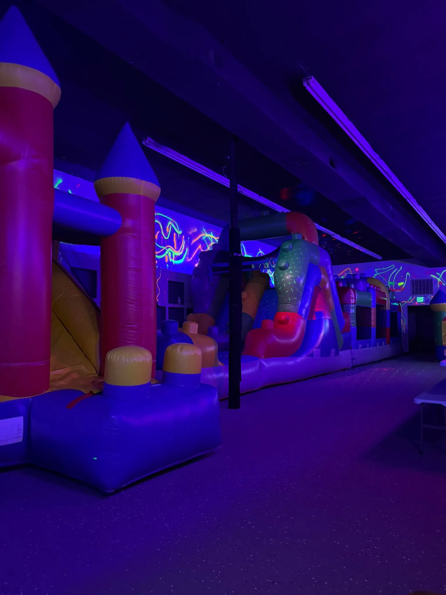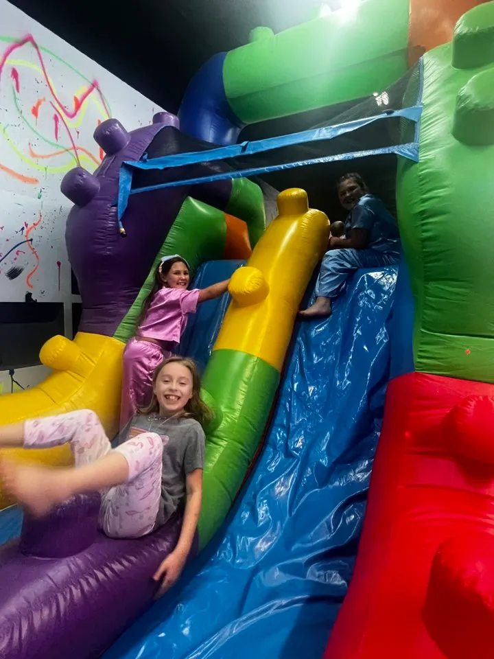 When you book a party, you are renting the whole building. No one, other than the party and employees will be allowed to enter the building during your event. We provide 2 bounce houses and a 40ft obstacle course. We also have 3 arcade machines and a Nex Playground that the party can use. We provide 4 6-ft rectangular tables as well as 2 6-ft rectangular tables to set food and presents on. We require table cloths for all tables, but do not provide them. We do not provide food or drinks for your party but you are welcome to bring any kind of food or drinks as well as decorations into the building.